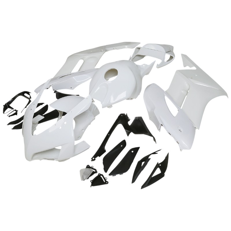 Kitul este livrat 100% nou, în culoarea alb nevopsit (Unpainted White), fiind ideal pentru personalizare completă. Un avantaj major al acestui kit carene Honda CBR1000RR 2004 2005 este faptul că vine pre-găurit, ceea ce îți permite să îl montezi direct, fără modificări suplimentare sau ajustări complicate la punctele de prindere. Materialul ABS de înaltă calitate este rezistent la vibrații, la impact și la condiții variate de utilizare — o alegere foarte apreciată de motocicliști de stradă și de pistă.